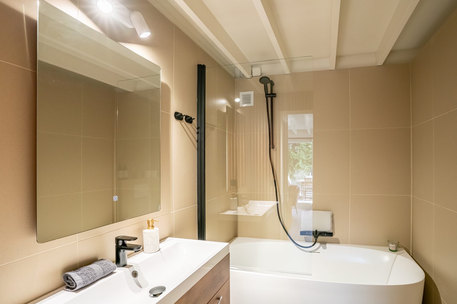 Het charmante vakantiehuisje is omringd door hoge bomen en ligt verscholen in het natuurlijke landschap van Oud Rekem. Een dorpje dat bekend staat als het mooiste dorp van Vlaanderen en waar je de authentieke Franse ambiance direct voelt.