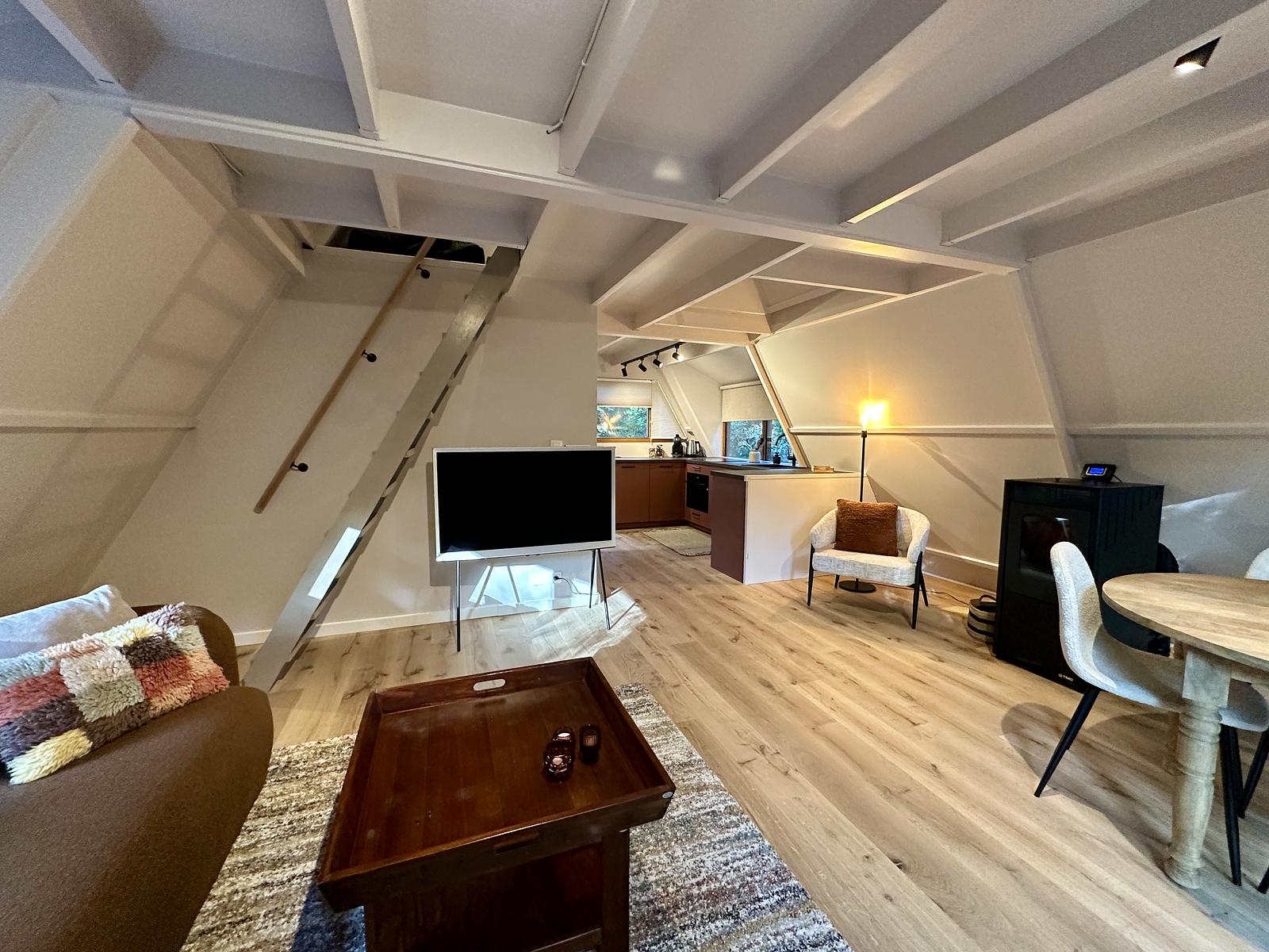 De slaapkamers op de eerste verdieping zijn in een open vide en alleen bereikbaar via een (steile) trap en daarvoor niet geschikt voor kinderen.